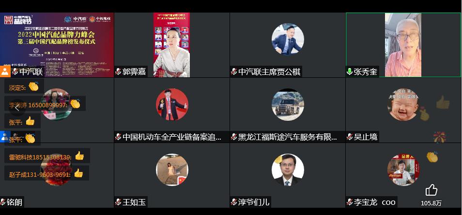 2022年6月10日,由 中國(陽谷)車品小鎮(zhèn) 特約冠名播出的2022中國汽配品牌力峰會暨第三屆中國汽配品牌榜發(fā)布儀式 在線上成功舉行,中國汽車服務(wù)業(yè)委員會會長、中國汽車工業(yè)協(xié)會后市場委員會執(zhí)行副理事長、中國汽車工業(yè)配件銷售有限公司原董事長、中汽聯(lián)會長王篤洋,上海萬超汽車天窗有限公司董事長、中汽聯(lián)主席、中國汽配品牌節(jié)主席賈公棋,國家汽車零部件產(chǎn)品質(zhì)量監(jiān)督檢驗中心副主任、中國汽配品牌節(jié)組委會主任楊貴霖,中國機動車全產(chǎn)業(yè)鏈備案追溯中心主任、中機維改交通信息管理中心主任趙幸芝,浙江省汽摩配商會會長、瑞立集團董事長張曉平,順風(fēng)燃油催化器制造有限公司總經(jīng)理李銘朗,黑龍江福斯途汽車服務(wù)有限公司董事長溫勝義,宏博達科技集團有限公司總裁李寶龍,汽配貓創(chuàng)始人趙建民,上海萬位數(shù)字技術(shù)股份有限公司副總經(jīng)理淳毅,華利汽配連鎖總經(jīng)理孫耀瑋,中國(陽谷)車品小鎮(zhèn)總裁吳志平,安徽太和晶宮國際汽車城總經(jīng)理蔡興超,中汽聯(lián)示范基地委員會會長張秀奎,中汽聯(lián)秘書長、中國汽配品牌節(jié)副主席兼秘書長郭霽嘉 等汽配大咖出席中國汽配品牌節(jié)閉幕式并做了精彩分享,引起了廣泛關(guān)注,點贊數(shù)量達到124.2萬個。