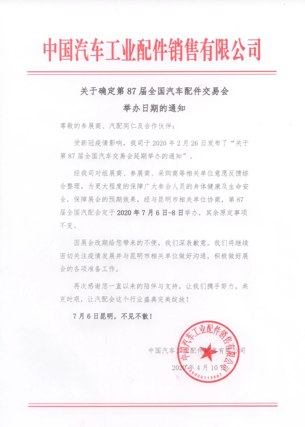 第87屆(昆明)全國汽配會將于7月6日-8日舉辦
