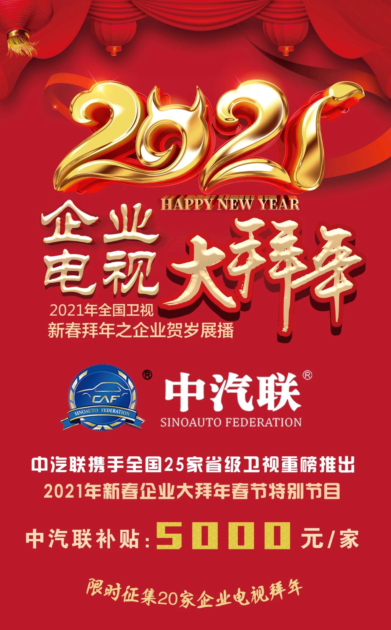 衛(wèi)視拜年 | 中汽聯(lián)攜25家衛(wèi)視,高額補貼,邀您給全國人民拜年!