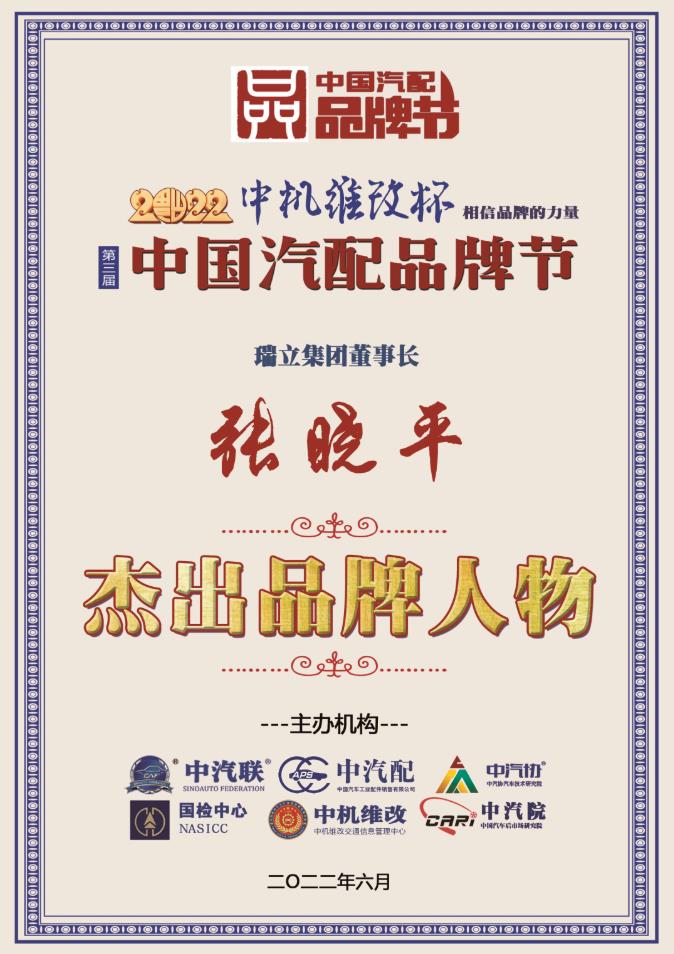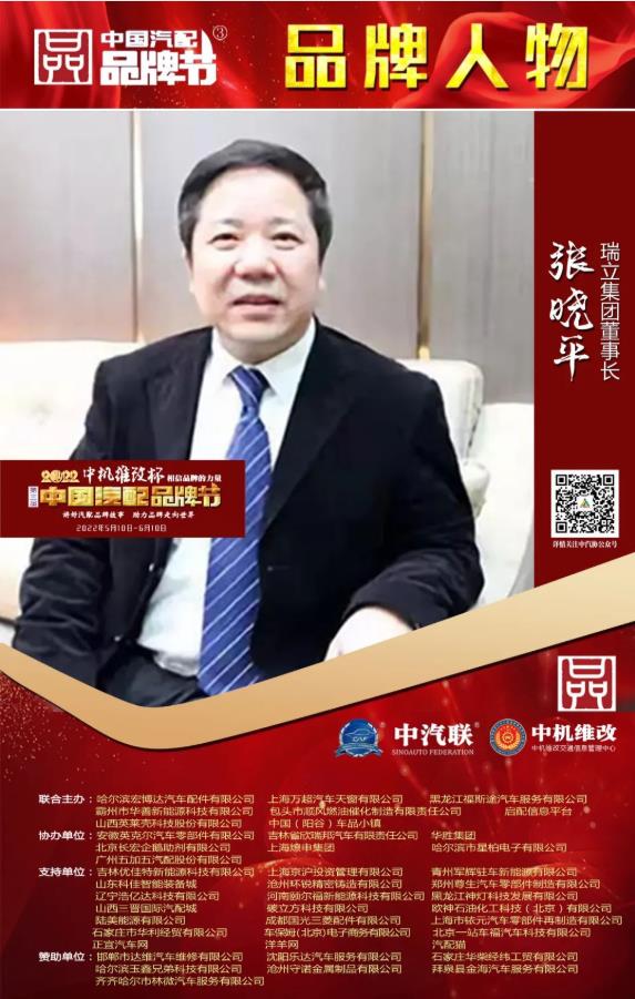 據(jù)《2022中國汽配品牌榜》榜單顯示:中汽聯(lián)主席團主席、瑞立集團董事長張曉平榮膺“2022中國汽配行業(yè)杰出品牌人物”。瑞立集團創(chuàng)辦于1987年,旗下現(xiàn)有全資、控股、參股企業(yè)20余家,產(chǎn)業(yè)跨越制造業(yè)、服務業(yè)。集團二產(chǎn)板塊主要從事汽車零部件、軌道車輛零部件的研發(fā)、制造和銷售。瑞立制造的軌道交通零部件在高鐵、動車、城軌、地鐵上廣泛應用。北京奧運會、上海世博會上,都有瑞立產(chǎn)品的身影。瑞立先后被命名為中國汽車零部件百強企業(yè)、國家汽車零部件出口基地企業(yè)、國家火炬計劃重點高新技術企業(yè)、國家知識產(chǎn)權示范企業(yè)、中國民營企業(yè)500強、浙江省制造業(yè)百強、浙江省工業(yè)行業(yè)龍頭骨干企業(yè)、浙江省創(chuàng)新型領軍企業(yè)、浙江省高端裝備制造業(yè)骨干企業(yè)、浙江省“三名”培養(yǎng)試點企業(yè)、浙江省“重才愛才”先進單位。瑞立在“思路決定出路、戰(zhàn)略成就未來、細節(jié)決定成敗”的發(fā)展理念指引下,形成了“一業(yè)為主、適度多元經(jīng)營,多元投資、專業(yè)管理”格局,現(xiàn)已發(fā)展成為主營汽配,兼跨房地產(chǎn)、酒店服務、商業(yè)、貿(mào)易、文教等為一體的無區(qū)域企業(yè)集團。