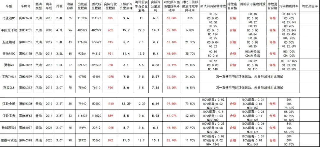 8月2日上午,在4位赤峰市人大代表、政協(xié)委員、林西電視臺及多位嘉賓的的見證下,對油箱的封條進行拆封,對11輛參賽車輛實際行駛公里數(shù)及實際油耗進行測算,道路實際測試結(jié)果盛大揭曉,均取得了顯著效果。